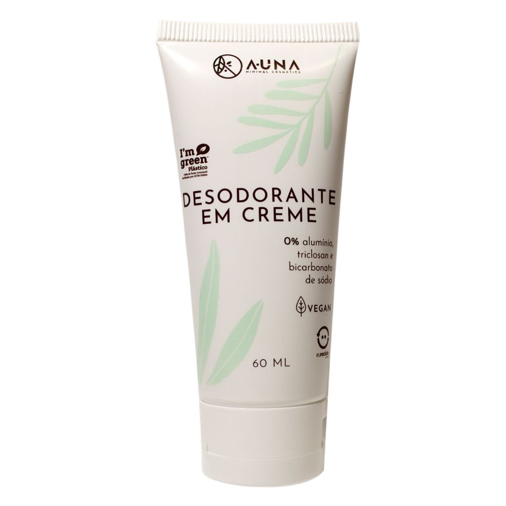 A-Una Desodorante em Creme 0% Aluminio Triclosan e Bicarbonato de Sódio 60ml Possui combinação de óleos essenciais refrescantes e um ativo desodorante de origem vegetal que inibe o mau odor corporal, prolongando a sensação de limpeza e frescor, sem agredir ou ressecar a pele.