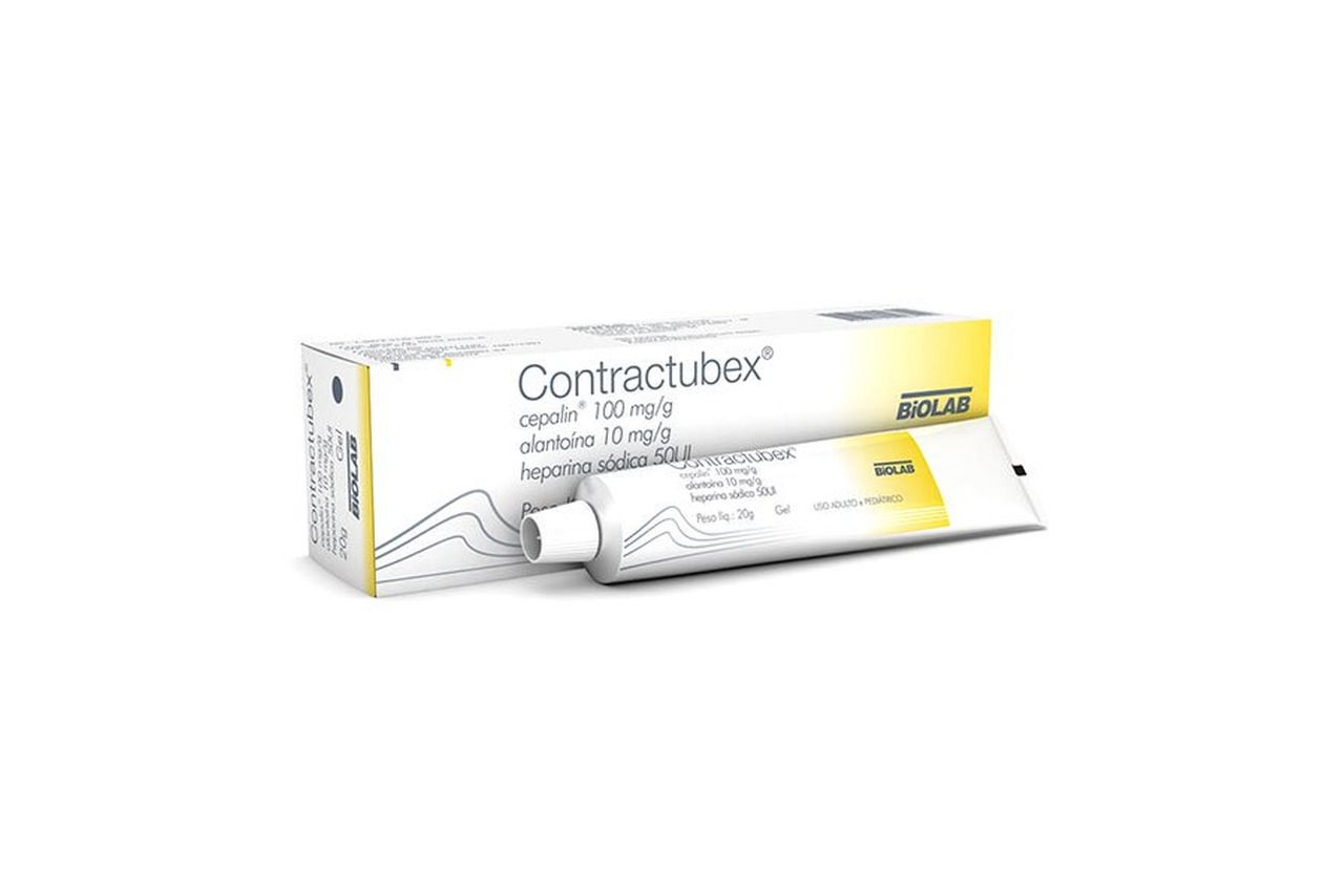 O Contractubex é um produto combinado à base de Cepalin, alantoína e heparina. O Cepalin atua como anti-inflamatório e possui efeito antialérgico e ação antibacteriana. Essas propriedades estimulam a reparação da pele além de conter a formação de cicatrizes anormais. A heparina possui propriedades anti-inflamatórias, antialérgicas, antiproliferativas e promove a hidratação do tecido endurecido causando um relaxamento das cicatrizes. A alantoína possui propriedades cicatrizantes, queratolíticas, hidratantes, epitelizantes e anti-irritantes. Além disso, a alantoína possui um efeito suavizante que diminui o prurido associado a formação de cicatrizes. Esses ativos, juntos, promovem um alto efeito na contenção da formação de cicatrizes.