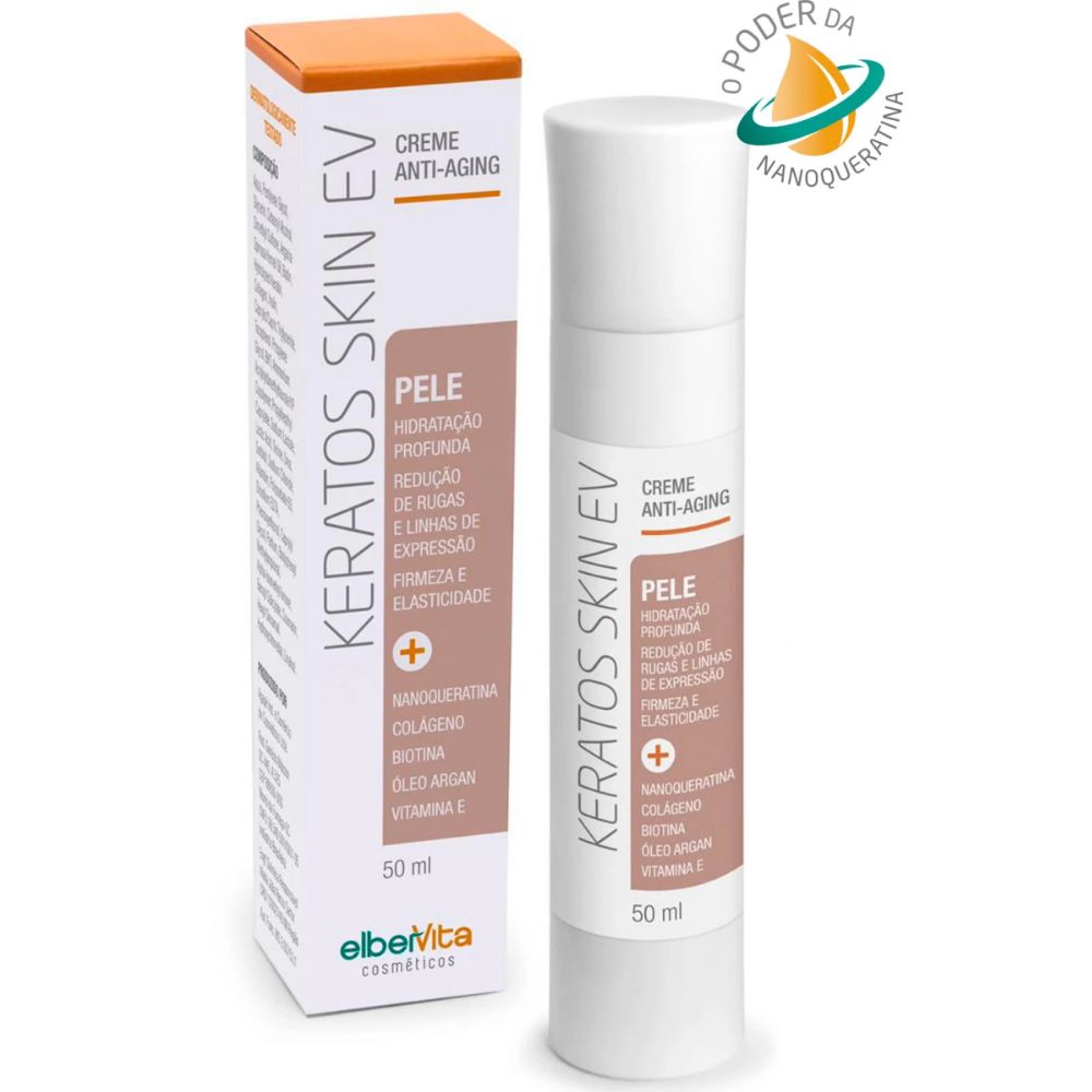Elbervita Keratos Skin EV 50ml O Keratos Skin EV é um poderoso Anti-Aging com ação hidratante profunda que melhora a elasticidade e aumenta a ¬ rmeza da pele. Estudos clínicos realizados pelo Laboratório Kosmoscience, credenciado pela ANVISA, comprovaram que o uso contínuo do produto reduz as rugas e linhas de expressão.