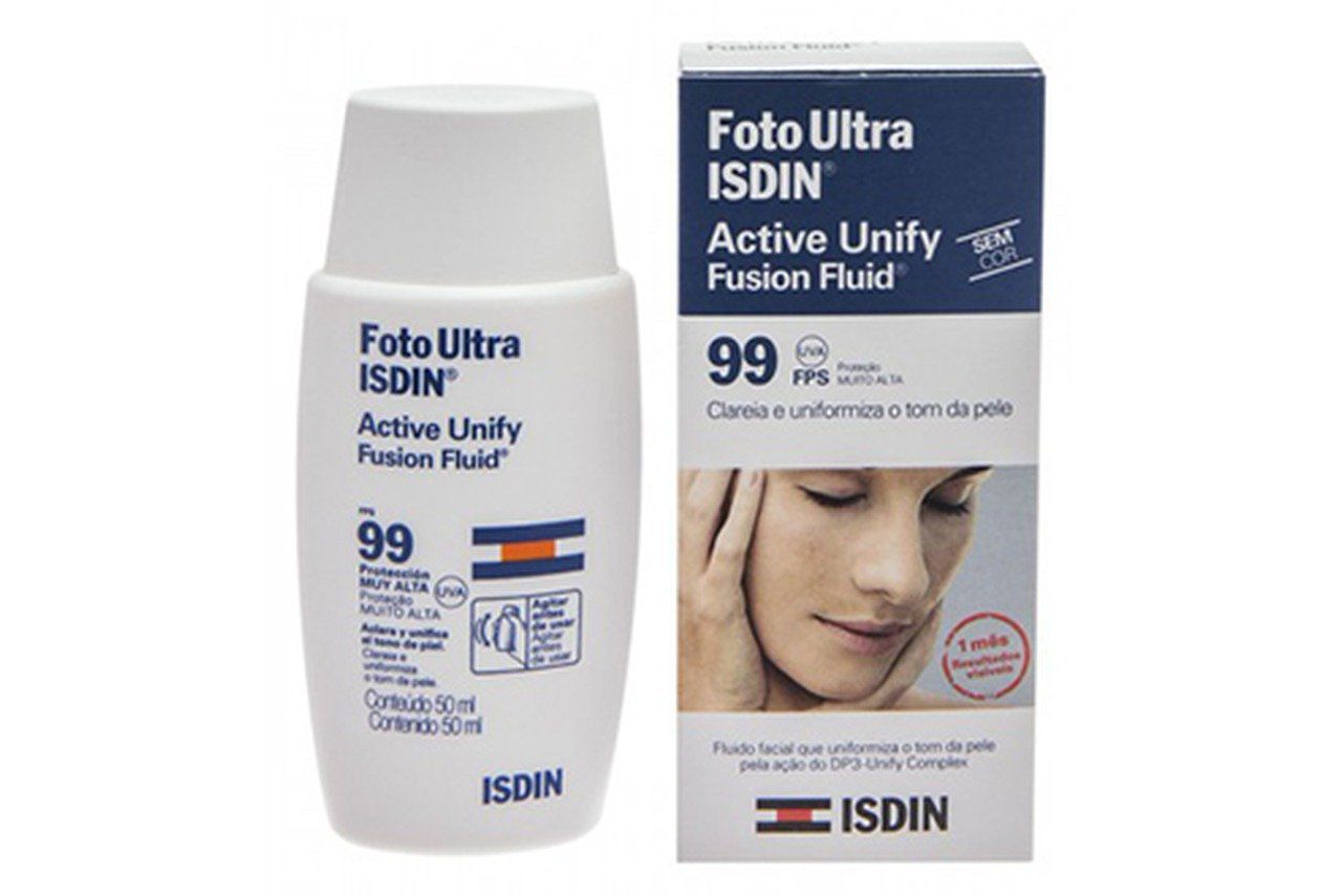 Isdin Fusion Fluid Active Unify Sem Cor FPS99 é indicado para todos os tipos de pele.
