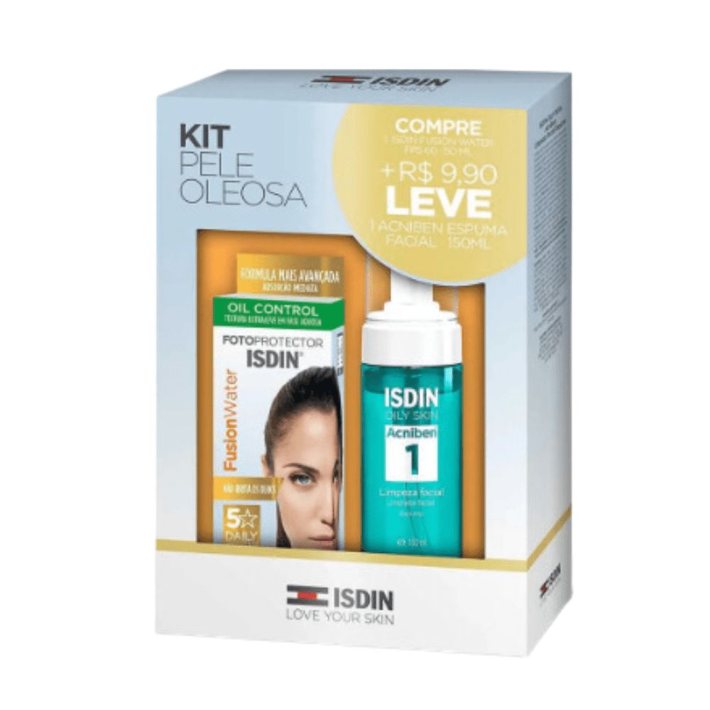 Isdin Kit Protetor Solar Facial Fusion Water Pele Oleosa Fps 60 50ml + Espuma de Limpeza Oily Skin Acniben 1 150ml