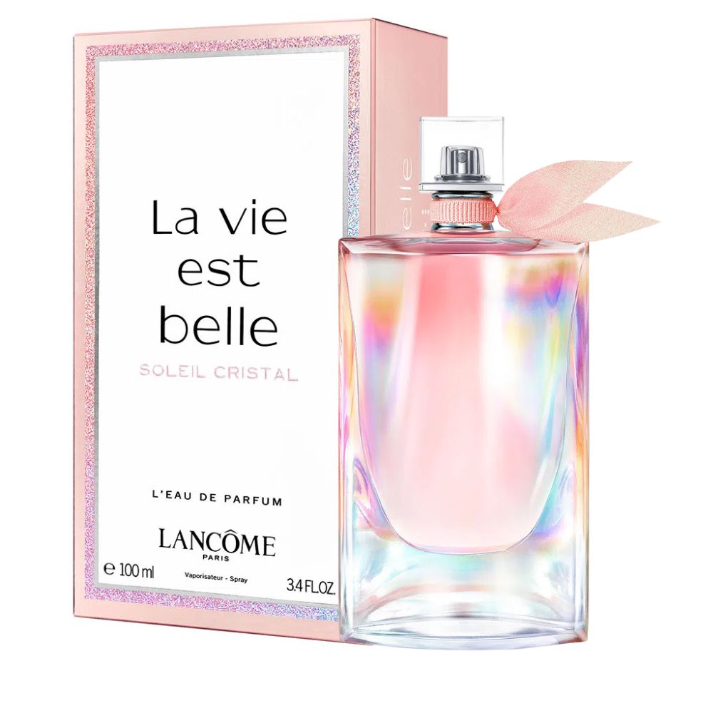 Envolvido em um frasco iridescente, o perfume La Vie Est Belle Soleil Cristal cintila como um raio de sol, trazendo luminosidade.