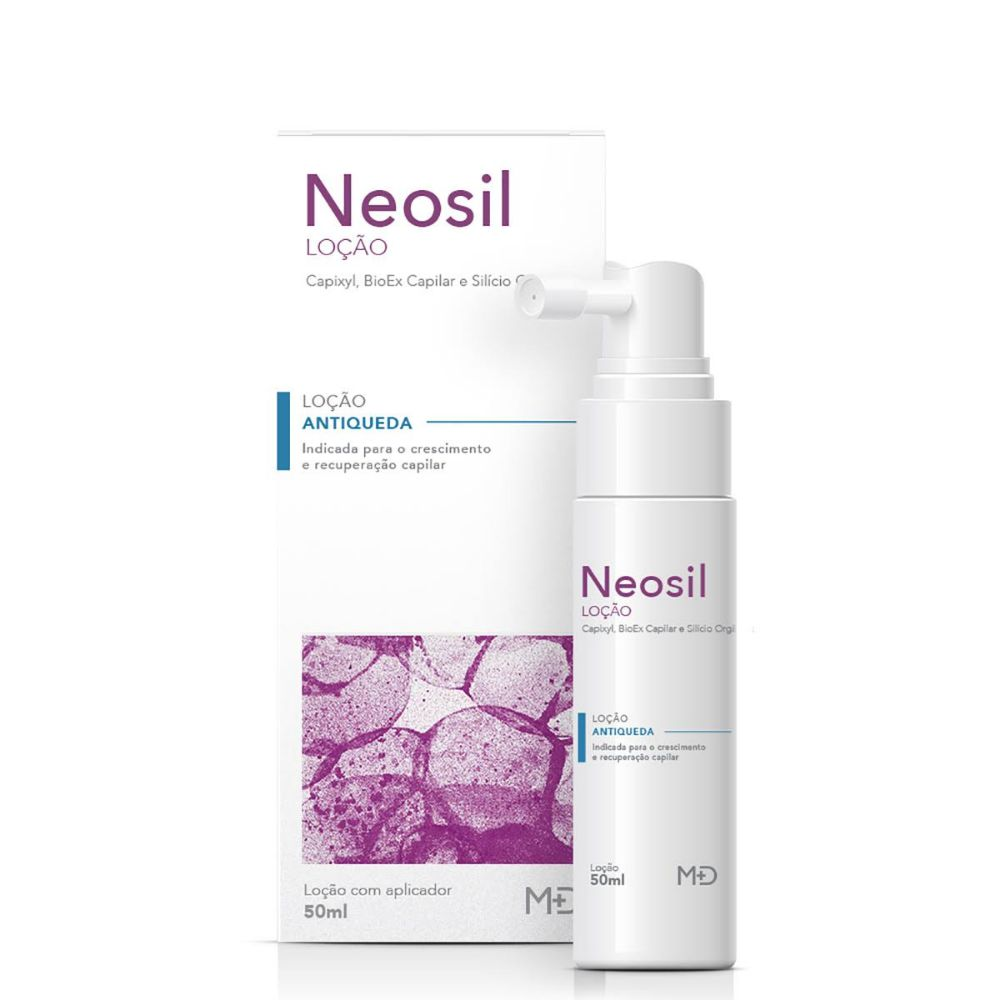 Neosil Loção Capilar Antiqueda 50ml Auxilia na redução da queda capilar, favorecendo o crescimento e a recuperação do aspecto normal dos fios - Possui formula triplice composta pelos complexos ativos capixyl, BIOEX Capilar aliados ao Silicio Orgânico, para auxiliar no tratamento antiqueda.